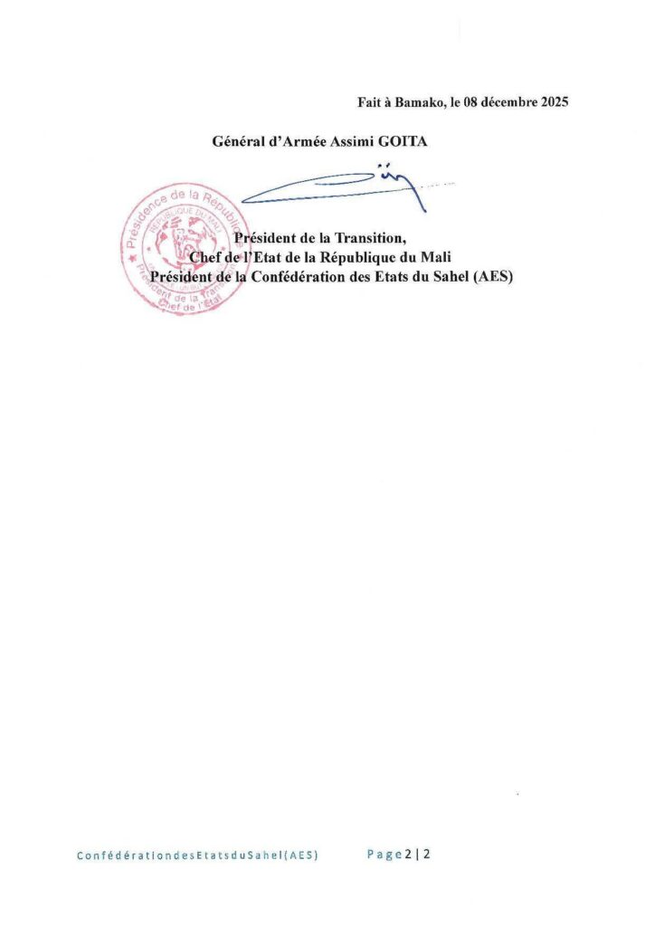 Face à cet incident, l’AES affirme avoir renforcé les mesures de sécurité aérienne à l’échelle confédérale. Sur instruction des Chefs d’État, les défenses aériennes et antiaériennes ont été placées en alerte maximale. Conformément à la déclaration adoptée le 22 décembre 2024, elles sont désormais autorisées à neutraliser tout aéronef pénétrant illégalement l’espace aérien confédéral.
