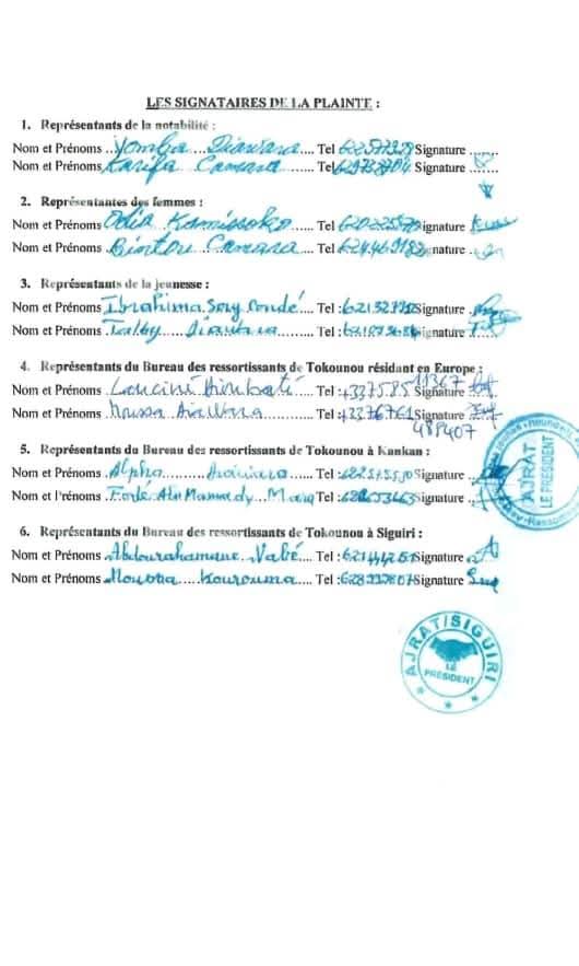 Quatre personnes sont spécifiquement visées par cette plainte : Lanciné Traoré, Président de la délégation spéciale de la Commune Rurale de Tokounou ; Sékou Diallo, Secrétaire Général de la même commune ; Laye Sekou Camara, Receveur communal ; Et divers complices dont les noms ne sont pas encore rendus publics.