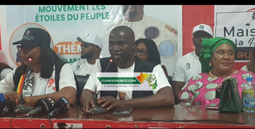 Le Mouvement « Les Étoiles du Peuple » pour la victoire du général Mamadi Doumbouya a animé une conférence de presse ce samedi 08 novembre 2025, à la Maison de la Presse de Conakry. Plusieurs cadres, membres du mouvement ainsi que d’autres représentants de structures de soutien au candidat Mamadi Doumbouya ont pris part à la rencontre, rapporte l’un des reporters de Guineesource.com.