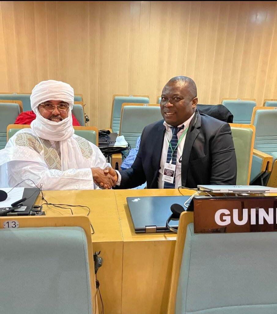 Fassou THEA a également été représentant de la Guinée auprès des Nations Unies, dans le cadre du groupe G-77 + Chine, où il a défendu avec rigueur et engagement les intérêts de la nation sur les grandes questions environnementales mondiales. Il est membre actif du Comité National du Changement Climatique, et a piloté plusieurs initiatives d’envergure comme le Guinea Water Hub, la préservation de la biodiversité, ou encore la prévention des conflits liés aux ressources naturelles.
