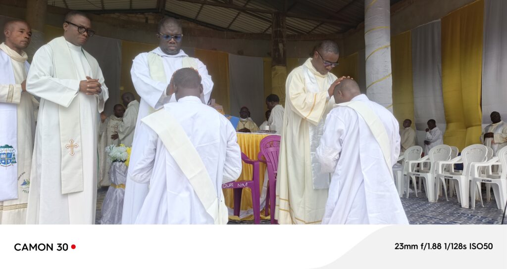 « Chers ordinands, l’ordination sacerdotale n’est pas un refuge face aux difficultés familiales ou sociales. Posez-vous cette question : pourquoi veux-je être prêtre ? Et répondez-y au plus profond de vous-mêmes. Le prêtre est le prolongement du Christ Jésus ; il devient même le Christ lui-même par l’ordination sacerdotale et par son comportement. Je vous invite à fuir la médiocrité et la mondanité. Un prêtre ne peut pas vivre sans les autres prêtres ni sans son évêque. L’Église a besoin de pasteurs qui travaillent ensemble, sous l’autorité de l’évêque. Travaillez votre cœur, n’ayez pas peur de votre fragilité. Apprenez à devenir endurants. Battez-vous pour la justice, la vérité et la paix. Le peuple de Dieu a besoin de vous : de vos conseils, de vos services, de votre présence de bâtisseurs. »