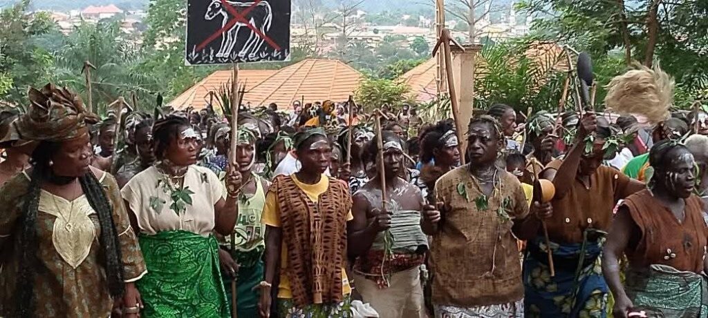 Vêtues en tenue traditionnelle inspirée des forêts sacrées, certaines torse nu, brandissant fourches et calebasses remplies de décoctions, elles ont parcouru la ville, passant par la préfecture et la mairie, en scandant des slogans réclamant le retrait immédiat des troupeaux destructeurs.