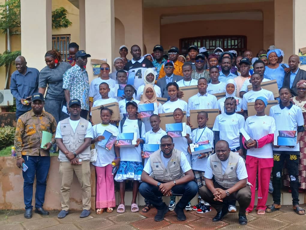 « Après les régions administratives de Boké, Mamou, Kindia, Faranah et Labé, nous voici aujourd’hui à N’Zérékoré pour honorer 21 jeunes esprits brillants. La remise de ces kits n’est pas une simple récompense : c’est un outil d’apprentissage conçu pour vous aider à approfondir vos connaissances et à concrétiser vos rêves. Notre vision est celle d’une inclusion numérique pour tous. Nous luttons activement contre les disparités sociales et géographiques en garantissant un accès équitable aux technologies, en particulier pour les élèves de l’intérieur du pays. Nous encourageons aussi l’égalité des chances et la participation des filles dans les métiers du numérique », a-t-il déclaré.