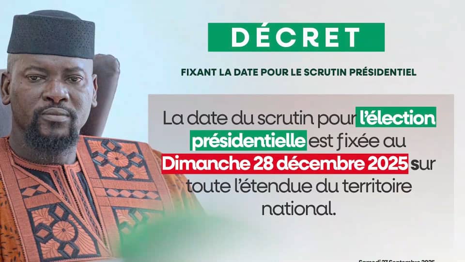 Le Président de la Transition, le Général Mamadi Doumbouya, a, à travers un décret lu à la télévision nationale, fixé la date tant attendue par le peuple de Guinée et la communauté internationale pour la tenue de l’élection présidentielle au 28 décembre 2025.