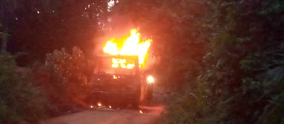 En réaction à ce tragique accident, des jeunes en colère ont mis le feu à dans le camion transportant du bois. Ce véhicule appartiendrait à la même société impliquée dans l’accident.